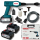 Комплектът включва: две акумулаторни батерии 36V 4000 mAh, две дюзи за различни струи, контейнер за активна пяна, филтър за вода, зарядно и практичен куфар за съхранение и транспорт. Идеална е за миене на автомобили, велосипеди, тераси и поливане на растения.