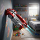 Wall Climber car се движи по под, стени и таван, като използва вграден засмукващ вентилатор – въздухът се изтегля отдолу и колата „залепва“ към гладката повърхност. Предимството е, че детето играе активно дори в малка стая, без да местите мебели и без опасност да блъска по маси и шкафове. Инфрачервеното дистанционно с 2 канала управлява колата на разстояние до 10 m – достатъчно за всяка стандартна детска стая или хол. Управлението е интуитивно: напред/назад, наляво/надясно и ефектен 360° пирует, с който колата се върти около оста си. Ярките габаритни светлини отпред и отзад правят играта в тъмно още по-вълнуваща – фарове при движение напред, „стопове“ при назад и мигащи светлини при завой. Времето за каране е около 7–8 минути, а зареждането – около 40 минути от дистанционното. Вградената акумулаторна батерия 3.7V 35 mAh е включена в самата количка; в дистанционното само добавяш 6 бр. батерии AA (не са включени).