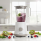 Блендера има чист, светъл и модерен вид – бяло тяло с неутрални акценти. Стои красиво на кухненския плот и се вписва в почти всеки интериор. Пластмасовата кана е прозрачна, практична и удароустойчива, което прави уреда лек и удобен за ежедневна употреба. Големият въртящ се бутон е лесен за управление дори с мокри ръце. Няма тънки и хлъзгави контроли – всичко е интуитивно и ясно. Крачета против хлъзгане държат блендера стабилен дори при по-тежки смеси. Това е реално предимство, което конкуренти често пропускат. Допълнителна полза – компактната основа. Уредът не заема място и се побира на всеки плот или шкаф. Практичен за малки кухни, офиси, общежития, апартаменти под наем. Приятен плюс – работи тиха, плавна и стабилна, без излишни вибрации.