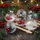 Прозрачните сфери създават усещане за лекота и чистота, а малките коледни елементи вътре изглеждат като миниатюрни снежни сцени. Текстурираният PVC материал изпраща светлината красиво, така че лампичките по елхата се отразяват и засилват ефекта. Червеното, зеленото и бялото в декорацията допринасят за класическото празнично излъчване. Всеки детайл е балансиран и стилно поднесен, което прави комплекта подходящ и за подарък – практичен, красив и универсален.