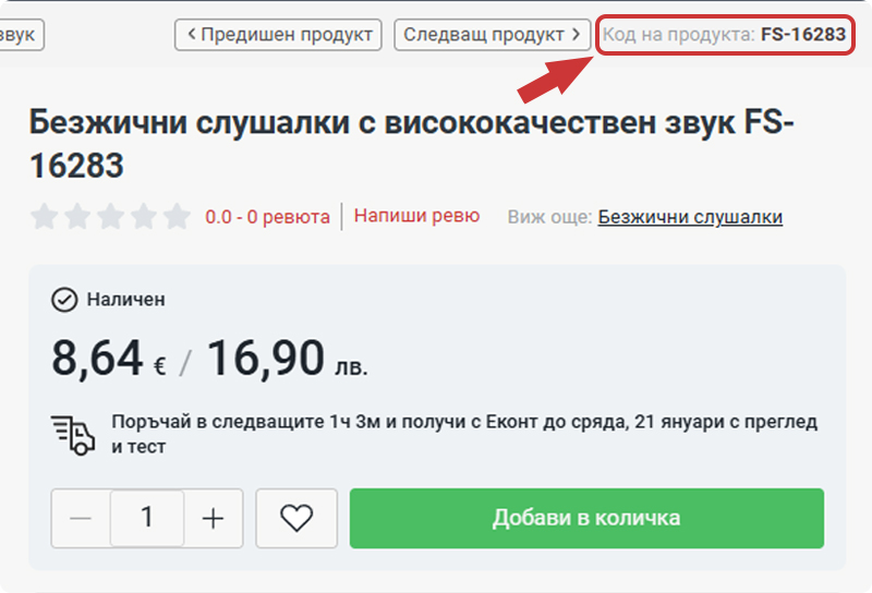 Нужно е да бъде посочен желания от Вас продукт, предлаган в нашия сайт, под формата на ID код на продукта, намиращ се в дясната част на формата за поръчка или наименование на продукта.
