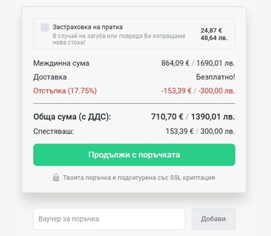 4. В дясната част на екрана е описана стойността на продуктите и финалната сума, която трябва да бъде заплатена.