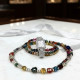 Дизайнът е богат на цветове, текстури и малки детайли, което прави комплекта видим и отличаващ се. Колие́то е по-дълго, с едри фасетирани мъниста, които пречупват светлината и създават фокален акцент. Гривните са по-нежни — изпълнени в разнообразни цветове, но балансирани така, че да изглеждат стилно, а не претрупано. Часовникът е с красиво обработен корпус, украсен с декоративни камъчета, които завършват цялостната комбинация. Сетът изглежда като подбрано бижу, а не просто отделни аксесоари.