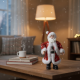 Фигурките са високи около 15 см – размер, който е удобен за всяко място, без да заема място или да пречи. Текстилното им облекло с пайети създава искрящ ефект, който отразява празничните светлини и прави декорацията още по-жива и интересна. Белият пух по ръкавите и краищата на палтото добавя класически щрих, а коланът с катарама внася реализъм и завършеност. Тялото е изработено от лека, но здрава пластмаса – удобство за семейства с деца, защото фигурките са устойчиви и лесни за поставяне. Двата налични цвята – червен и син – позволяват да избереш стил, който най-добре пасва на твоята коледна украса или да ги комбинираш за по-ефектен празничен вид.