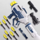 Моделът впечатлява с масивен и футуристичен външен вид, вдъхновен от реалистичните RPG гранатомети. Комбинацията от сиво-сини тонове и жълти ракети създава усещане за сила и високотехнологично оръжие. Ергономичната ръкохватка осигурява стабилно захващане дори при по-дълга игра, а корпусът е изработен с внимание към детайла. В комплекта са включени осем ракети, които се поставят в цилиндъра отпред – всичко е готово за действие още от кутията.