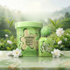 Бутилката и опаковката са играчка за очите: пастелнозелена керамична визия, оформена с обемни, приятни за държане линии и кръгъл капак, който напомня за сладка бонбонена естетика. Графичните органични петна и контрастните детайли върху картонената туба акцентират върху натуралния матча и гурме нотите, предизвиквайки усмивки и желание за игра. Дизайнът е съзнателно млад и стилен, за да допълва детски дрехи и аксесоари, да добавя цветен акцент към тоалета и да изгражда визуална идентичност — идеален за родители, които търсят модерен продукт за малките си модници. Визията говори за увереност и чар, без да е претенциозна.