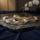 - Златисти листенца с деликатна текстура, които придават визуален релеф и артистична нотка.
