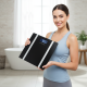 Кантарът е с елегантна платформа от закалено стъкло, която изглежда модерно във всяка баня или спалня и се почиства лесно само с едно забърсване. Двете вертикални ленти придават премиум визия и визуално „изтъняват“ силуета на везната. Големият LCD дисплей с висока видимост показва ясно теглото и допълнителните индикатори, така че да виждаш резултата дори при по-слабо осветление. Предлага се в два цвята – дълбоко черно за по-техно и минималистичен интериор и чисто бяло за свеж, изчистен стил. Тънкият профил позволява да го прибираш лесно под шкаф или встрани до стената, когато не го използваш.