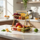Двуетажна метална поставка за плодове Cheffinger – златист дизайн, компактна и стабилна FS-22408