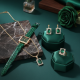 Елегантен комплект часовник и бижута с зелени кристали и златист корпус FS-22182