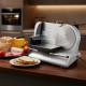 Силата на този електрически слайсер е в баланса между мощност и контрол. 190 мм назъбен нож от неръждаема стомана реже чисто и равномерно — от хляб и колбаси до сирена, зеленчуци и плодове. Предимството на назъбения профил е, че не накъсва и не “дъвче” продукта, а минава плавно, без да го смачква. Регулируемата дебелина от 1 до 15 мм се настройва с плавно копче — тънко за прошуто и кашкавал, по-дебело за сандвичи или готвене. Меден мотор с мощност 150W осигурява стабилна работа и по-нисък шум, без резки вибрации. По данни от продукта нивото на шум е до 75 dB, което прави употребата спокойна и подходяща за домашна кухня. Добави и прозрачен бутач с предпазител, който държи ръцете далеч от ножа, и получаваш машина, която работи уверено и безопасно. Това не е играчка, а реален помощник за ежедневно рязане.