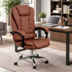 Класическият офис дизайн в елегантен кафяв цвят придава професионален и представителен вид на всяко работно пространство. Формата е балансирана между комфорт и стил, което прави стола подходящ за офиси, конферентни зали, приемни и домашни работни зони.