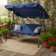 Люлката разполага с регулируем сенник до 45°, две пластмасови поставки за чаши и крайни капачки за краката. Комбинацията от тъмносиня конструкция и сиви възглавници добавя стил към градинските мебели и прави релаксацията по-удобна.