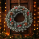 Венецът е изработен от гъсти изкуствени клонки, покрити с фино „снежно“ докосване, което изглежда като естествен първи сняг. Декориран е с естествени шишарки и червени плодчета, които добавят контраст и класически коледен чар. Пристига напълно готов за поставяне – с връзка и кука за монтаж, без нужда от допълнителни елементи. Подходящ е както за външна, така и за вътрешна употреба: входна врата, камина, стена, витрина или празнична маса. Материалите са устойчиви на температурни промени и не се деформират, което го прави идеална дълготрайна украса.