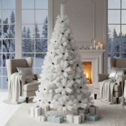 Елхата е проектирана с внимание към всеки детайл – от деликатното заснежаване на върховете до гъстите, реалистични клони, които изглеждат като истински. Цветовият баланс между зелено и снежнобяло носи усещане за лукс и спокойствие. Подходяща е както за класическа, така и за модерна декорация.