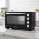 Печката впечатлява със стилна комбинация от черно и метални акценти, която се вписва във всеки интериор. Предният панел е оборудван с четири удобни метални бутона за контрол, ясно обозначени функции и светлинни индикатори. Стъклената врата с двойно термоустойчиво стъкло позволява отлична видимост към вътрешността на фурната, а компактният корпус стои стабилно върху плот, маса или кухненски шкаф. Дизайнът е създаден така, че да предлага максимален капацитет при минимален заеман обем.