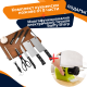 Тъпите ножове и неудобните кухненски инструменти не само забавят готвенето, но и превръщат всяка рецепта в излишно усилие. С комплекта кухненски ножове от 8 части F020 SD383 ще имате под ръка всички необходими остриета за рязане, белене и обработка на продукти – остри, практични и надеждни. А за да бъдат винаги като нови, към комплекта получавате ПОДАРЪК – електрическо точило Swifty Sharp TV162, което възстановява остротата за секунди. Това е пълното решение за всяка кухня, в която скоростта, прецизността и удобството имат значение.