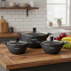 3-слойно незалепващо мраморно покритие - храната не залепва, готвиш с по-малко мазнина и без загаряне. Отлично разпределение на топлината - равномерно готвене - ястията се приготвят по-бързо и с по-добър вкус. Подходящи за всички видове котлони, включително индукционни. Универсална употреба - не сменяш съдове при смяна на печка. Силиконови, ергономични дръжки - стабилен и удобен захват, безопасност при ежедневно готвене. В сравнение с масовите тенджери с тънко покритие, които се износват бързо, този комплект е по-здрав, по-хигиеничен и по-лесен за поддръжка. Може да се мие в съдомиялна машина, без да губи свойствата си – нещо, което наистина пести време.