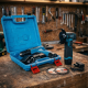 - Съвместимост на батериите: Батериите са еднакви и могат да се използват между винтоверта и ъглошлайфа — при закупуване получавате 3 батерии (две в куфара за винтоверта и още една за ъглошлайфа), което осигурява продължителна работа без спирания.