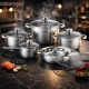 Изчистеният и елегантен дизайн на Rosberg носи усещане за модерна и уютна кухня. Висококачествената полирана неръждаема стомана придава професионален вид, който лесно се комбинира с всяка кухненска обстановка. Ергономичните дръжки и плътните капаци не само изглеждат стилно, но и са проектирани за удобство при работа — пренасяне, наливане и сервиране стават лесно и безопасно. Този комплект е идеален както за ежедневни семейни вечери, така и за специални поводи, когато искате да впечатлите гостите.