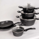 Комплект съдове за готвене Cheffinger от лят алуминий с мраморно покритие – 10 части, индукционни, незалепващи FS-22378