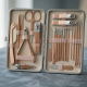Комплектът съдържа 23 части: ножица, 4 вида нокторезачки, клещи, пинсети, две пили и 14 други професионални инструмента за грижа за ноктите и кожичките. Подходящ е за ежедневна домашна употреба, пътни спа процедури и създаване на професионален маникюр в условия у дома.