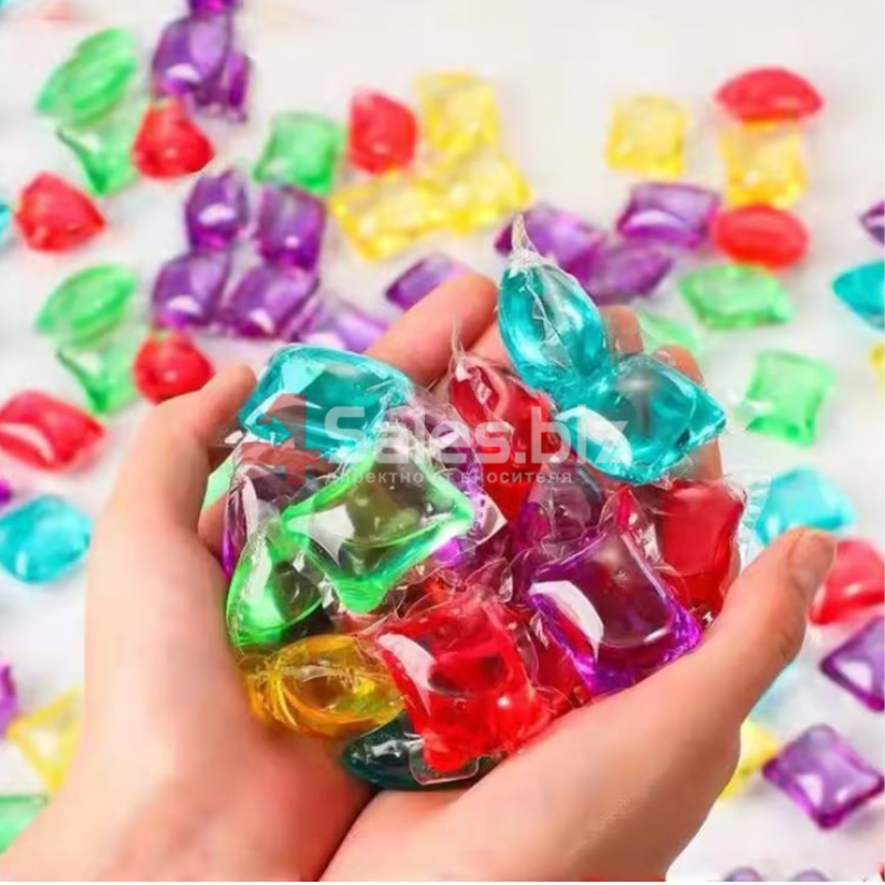 Представяме ви голямо разнообразие от капсули за пране, които служат както за цветно, така и за бяло пране. Съчетание от различни цветове със съставка от един перлен компонент. Капсулата, сама по себе си се разгражда моментално при контакт с вода. За разлика от праховите препарати, те са разработен по специална технология, която е преценила точното количество и го е събрала в 1 продукт. Изпира съвършено, без да оставя петна след себе си. Само една капсула стига за пълна пералня с дрехи. Какво по-страхотно от това и в същото време икономично. Грабнете сега, кутийката с капсули, на изключително ниска и изгодна цена.
