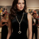 Колието е висящо с дължина, която пада ефектно по деколтето, а висулката добавя централна точка. В повечето случаи дължината е фиксирана, но дизайнът позволява да бъде комбинирано с високи яки или дълбоки деколтета за различни визии.