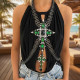 Модерно колие за врата и кръста с инкрустиран кръст е смело и артистично бижу, създадено да преобрази всяка летна визия. Това фешън колие комбинира огърлица и декор за талията в един изразителен аксесоар, обсипан с цветни кристали и масивни камъни, които привличат погледите и придават увереност. Идеално за дами, които искат да заявят стил и индивидуалност — носете го върху рокля, топ или комбинация с дънки за безпогрешен градски и вечерен шик. Този модел отговаря на най-актуалните тенденции в модните бижута: ярки камъни, ретро мотиви и обемна визия, която говори сама за себе си.