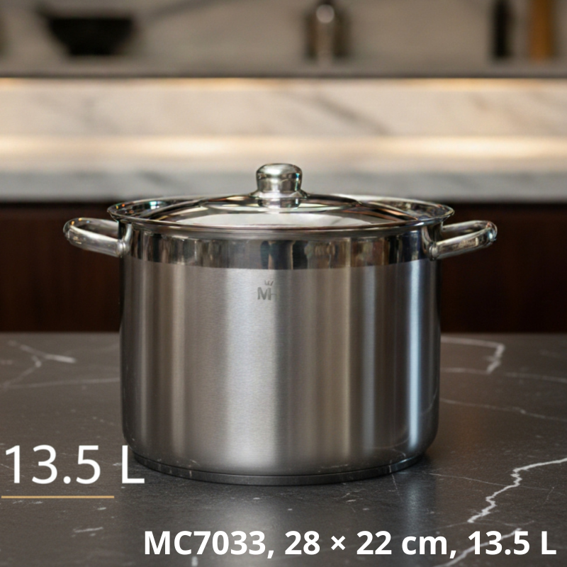 Ако ти омръзна храната да загаря, водата да прелива и тенджерите да се изкривяват след няколко месеца, време е за промяна. Серията MERCURY HAUS COSMO PREMIUM е създадена точно за тези проблеми – издръжливи съдове от висококачествена неръждаема стомана 18/10, с 3-слоен капсулован термо-дънен слой, който разпределя топлината равномерно и спестява до 30% енергия. Резултатът? – Перфектно сготвена храна, без загаряне и без нерви!
