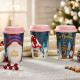 Коледните илюстрации са ярки, ясни и в типичните зимни цветове – синьо, червено, бяло. Всеки елемент е забележим: джуджета с шапки, еленчета, гъбки, снежен фон. Дизайнът не е претрупан – изглежда модерно, чисто и достатъчно празнично, за да стои красиво на масата или под елхата като част от коледната декорация. Текстурата на керамиката дава усещане за топлина, а матовият силиконов капак прави чашата безопасна и удобна за носене, дори от деца.