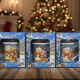 Дизайнът е ярък, зимен и носи цялата атмосфера на Новогодишните празници: снежен човек с шапка, малко еленче и сърничка блестящ сняг и коледни мотиви. Цветовете са топли и празнични върху дълбока синя кутия, илюстрирана като зимна приказка – заснежени къщи, лампички, елха и подаръци. Кутията е с дръжка и прозорец, което я прави идеална за подаряване без допълнителна опаковка. Добавя настроение както в кухнята, така и като част от коледната украса.