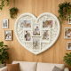 Рамката е изработена във формата на голямо сърце с нежни декоративни орнаменти и мека бяла рамка, която подчертава снимките без да доминира. Вътре има няколко отделни фотоотсека – подходящи за хоризонтални и вертикални снимки. Декорацията стои чудесно в спалня, детска стая или дневна и се вписва в интериори с романтичен, скандинавски или класически стил.