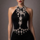 Дизайнът е разкошно съчетание на класика и модерна драматичност. Централната част оформя богато украсен чокър, от който се спуска впечатляваща вертикална орнаментация, свързваща се към веригата за талия — ефект, който сякаш пренася бижуто от шията към тялото. Всеки детайл е прецизно подбран, за да създаде хармоничен, но запомнящ се образ: фасетираните кристали придават искрящ блясък, а мънистата и капковидните висулки внасят движение при всеки жест. Това колие-комплект работи прекрасно като централна точка на вечерен тоалет, но може да бъде и акцент в по-смели ежедневни комбинации — подчертава стил, увереност и изискан вкус.