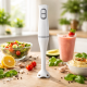 - Мощност 350W — достатъчна за бързо пасиране и смесване на плодове, зеленчуци и леки смеси.