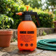 Ярко оранжевият цвят не само придава визуална идентичност, но и повишава видимостта в градината. Формата на бутилката и устойчивото дъно (диаметър 13 см) осигуряват стабилност при поставяне, а височината от 31 см прави уреда компактeн и лесен за съхранение. Ергономичната дръжка е проектирана за комфортен захват, като ключалката освобождава ръката при продължително пръскане. Регулируемата дюза с фина настройка позволява адаптация при различни растения и работни условия, докато вътрешната помпа осигурява бързо и безопасно натоварване на налягането.