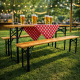 Сгъваем комплект градинска маса с 2 пейки - От чамово дърво е перфектното решение за онези спонтанни празници на открито, които искате да превърнете в незабравим миг. Този комплект комбинира здрава конструкция и естествена красота, осигурявайки комфорт за до 4 души и усещане за уют при всяко събиране — семейно барбекю, градинско парти или пътуване за пикник. Лесно сглобяем и преносим, той ви дава свободата да сменяте местата и да съхранявате мебелите компактно, без компромис с издръжливостта и стабилността. Продуктът има леки пукнатини, които не възпрепятстват неговото използване.