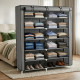 Сгъваем текстилен шкаф XXL за дрехи и обувки - голям капацитет и функционалност предлага решение за хаоса в антрето и гардероба — голям капацитет в компактен, лек и издръжлив корпус. Ако сте уморени от трупащи се обувки и разхвърляни аксесоари, този платнен гардероб ще ви върне контрола над пространството. С 12 рафта, многостепенна конструкция и защитен платнен капак с цип, шкафът съхранява обувките и дрехите ви далеч от прах, влага и невзрачни купчини. Идеален е за семейства, наеми, стаи за гости или съхранение в килер — практичен организатор за обувки, който прави ежедневието по-спокойно и подредено.