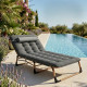 Шезлонгът предлага две регулируеми позиции — полулегнала и напълно легнала, плюс ергономична облегалка за глава. Матракът е с дебелина 6 см, с памучна подложка за комфорт при почивка.