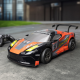 R/C “Gran Turismo Sports” впечатлява с агресивен спортен облик в черно-оранжева цветова комбинация. Силно изразени линии, нисък профил и голям заден спойлер подчертават спортния характер. Детайлите са внимателно изработени – от надписите „Gran Turismo“ и състезателния номер до фино моделираните фарове. Дизайнът е вдъхновен от реалните GT автомобили и придава на играта реализъм и стил. При движение, светлинните ефекти и гладкият ход създават впечатление за истинска надпревара на писта.