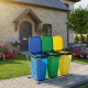 - Три отделения с цветово кодиране за пластмаса (жълто), хартия (синьо) и стъкло (зелено) — сортирането е видимо и не може да бъде объркано.