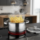 Класически и изчистен външен вид от неръждаема стомана, който пасва на всяка кухня. Страничните дръжки са стабилни и удобни за пренасяне. Стъкленият капак позволява да следиш процеса без да го прекъсваш. Кошницата е с удобна дръжка и се поставя стабилно в тенджерата. Материалите са устойчиви на висока температура и подходящи за интензивна употреба. Дизайнът е създаден с мисъл за безопасност, хигиена и лесна поддръжка.