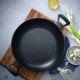 Тиганът впечатлява с елегантна черна визия, характерна за серията ProfiSelect. Дръжките са широки и удобни, което улеснява захващането и повдигането дори при пълно натоварване. Вътрешната повърхност е гладка и равномерна, а външният дизайн е минималистичен и модерен – подходящ както за домашни кухни, така и за професионални среди.