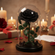 - Материали: истинска роза, стъклен капак, декоративна основа;