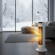 Вертикалната „кула“ е тънка, елегантна и спестява място – идеална за малки помещения. Корпусът е стабилен, лек и лесен за преместване. Отпред има защитна решетка, която насочва топлината, а горният панел е с ясен LED дисплей. Наличието на дистанционно прави работата интуитивна, а материалите са устойчиви на нагряване и ежедневна употреба. Цветовата комбинация е модерна и се вписва лесно във всяка празнично подредена стая.