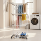 Сушилникът разполага с три платформи за закачане на дрехи, всяка с по осем тръби за ефективно разпределение на мокрите дрехи. Благодарение на мобилността му, оборудван с колелца, можете лесно да го преместите, когато е необходимо, дори когато е напълно натоварен с прането. Идеален за всякакви помещения в дома, този сушилник е с ергономичен и лесен за използване дизайн, който ви позволява да сгъвате сушилника, когато не го използвате, като спестява ценно пространство. Можете да го използвате не само в закрити помещения, но и на открито.