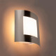 Лампата е с модерна форма – леко извита неръждаема стомана, комбинирана с матово стъкло за равномерно и ненатрапчиво разсейване на светлината. Подходяща е както за класически, така и за съвременни фасади. Монтирана на стена, създава елегантен светлинен ефект, който едновременно осветява и украсява.
