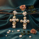 Златисти обеци с кръст и бели цветя А40 FS-5236